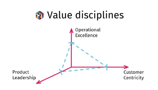 В каждом проекте нужно осознанно делать десятки таких выборов. Чтобы они оказывались правильными для компании в целом и не терзали душу менеджера, можно использовать модель ценностных дисциплин. Она применяется к компании в целом.