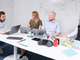Раз в две недели команда с нашей стороны встречается или скайпится с командой разработчиков: финализирует и принимает результат работы по прошедшим задачам, формулирует задание на следующий спринт.