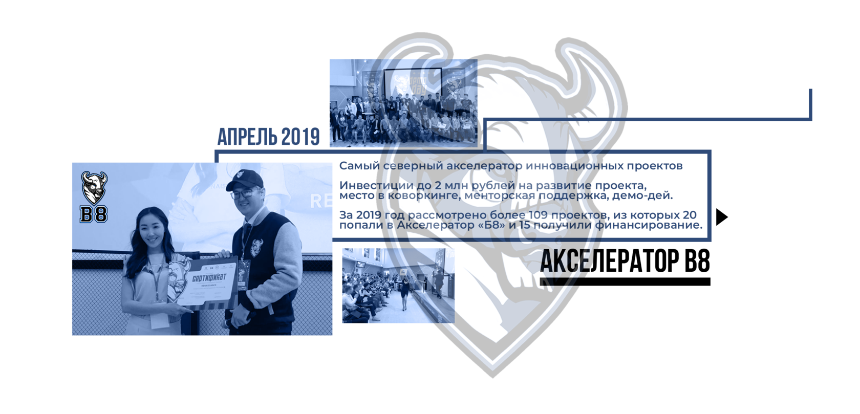 Первый на Дальнем Востоке акселератор инновационных ИТ-проектов «B8» открылся весной 2019 года и за два набора выпустил 20 проектов, 15 из которых получили финансирование.
