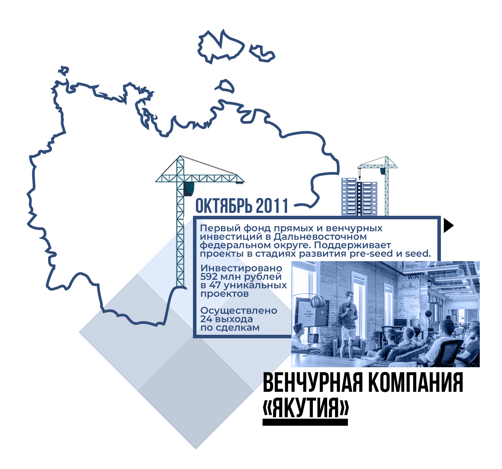 Венчурная компания «Якутия» была учреждена в октябре 2011 года. Сегодня это единственный во всем Дальневосточном федеральном округе фонд прямых и венчурных инвестиций с государственным участием, ведущий активную инвестиционную деятельность.
