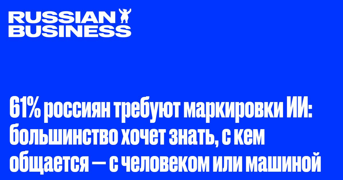 Россияне хотят точно знать, разговаривают ли они с живым человеком или с искусственным интеллектом. Согласно исследованию SuperJob, 61% респондентов поддерживают идею обязательной маркировки ИИ при коммуникациях компаний с клиентами. Против выступает только 12%.