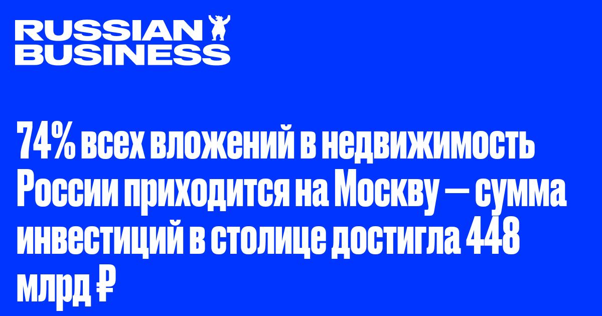 74% всех вложений в недвижимость России приходится на Москву — сумма инвестиций в столице достигла 448 млрд ₽