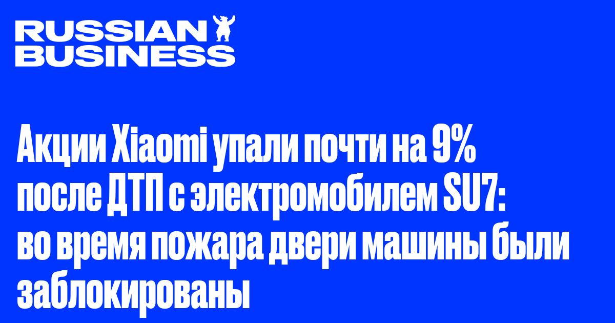 Акции Xiaomi упали почти на 9% после сообщений о ДТП с участием электромобиля SU7 в китайском Чэнду. В результате удара машина загорелась, а водитель не смог выбраться – двери были заблокированы. Инцидент уже поставил под сомнение безопасность электронных систем автомобиля.
