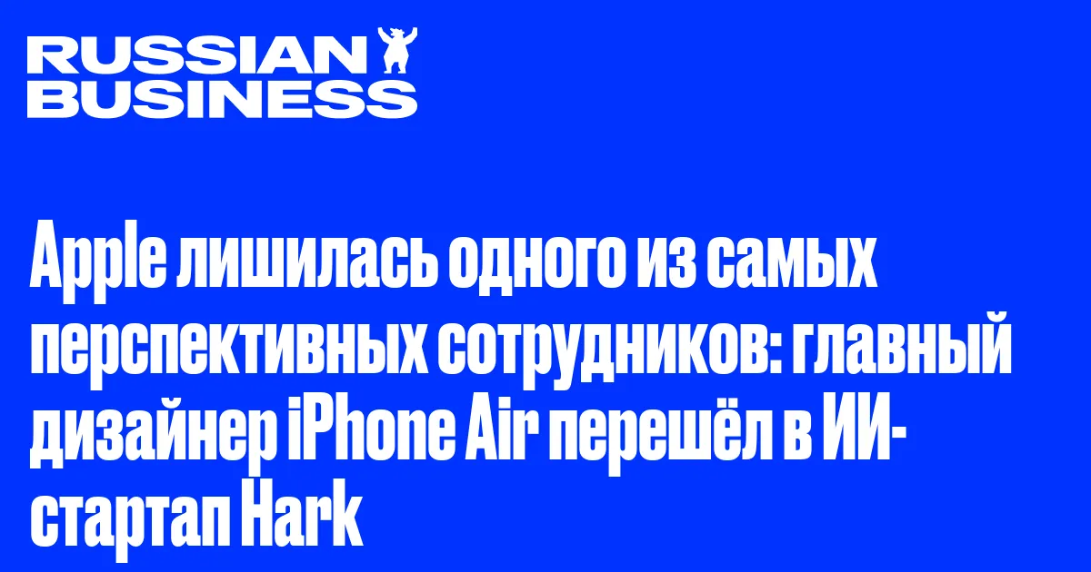 Apple лишилась одного из самых перспективных сотрудников: главный дизайнер iPhone Air перешёл в ИИ-стартап Hark