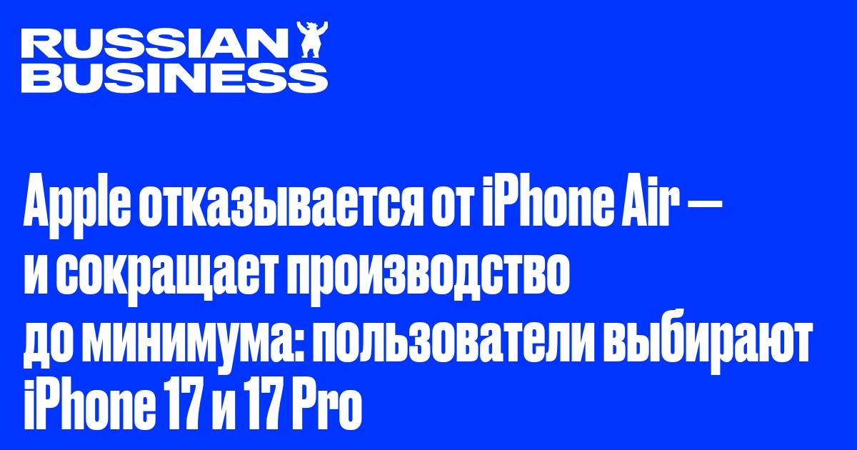 Apple резко изменила производственные планы по линейке iPhone 17, сообщает Nikkei Asia. Компания почти прекратила выпуск модели iPhone Air из-за слабого спроса за пределами Китая — и одновременно увеличила заказы на комплектующие для базового iPhone 17 и флагманского iPhone 17 Pro.