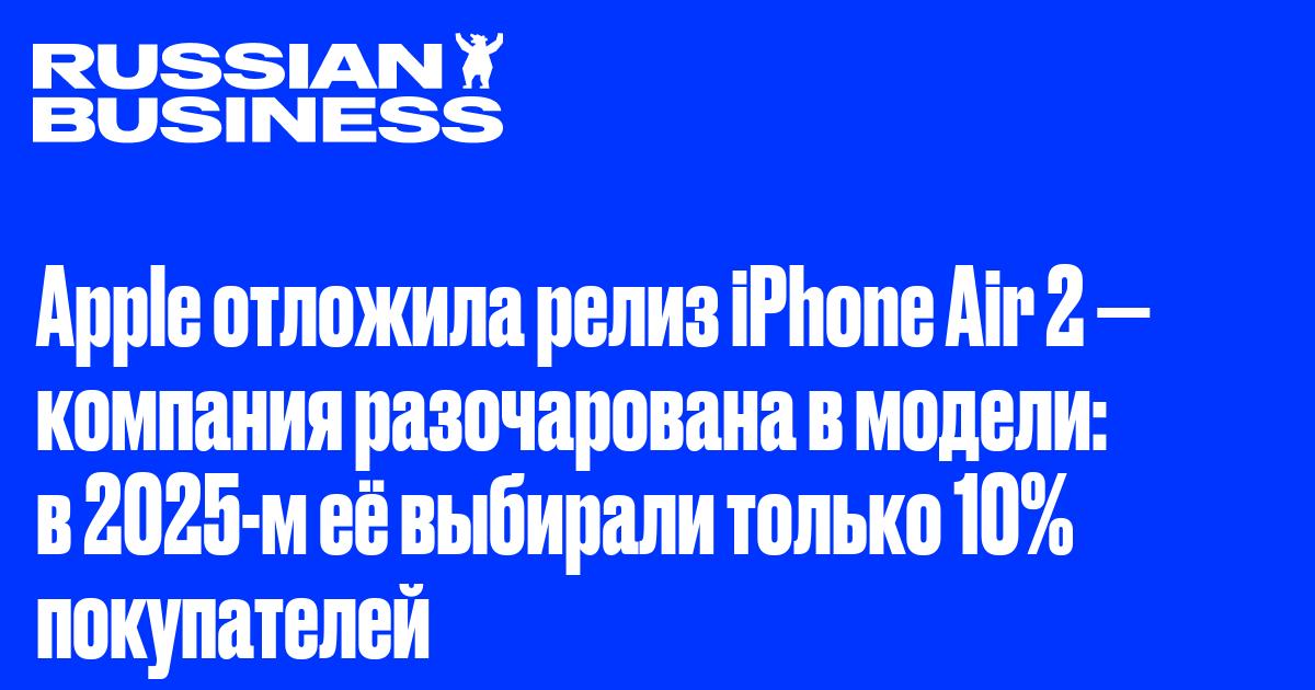 Ранее сообщалось, что модель не оправдала себя и с финансовой точки зрения. В течение первых недель продаж iPhone Air только один из десяти покупателей выбирал эту модель среди всей линейки обновленных смартфонов.