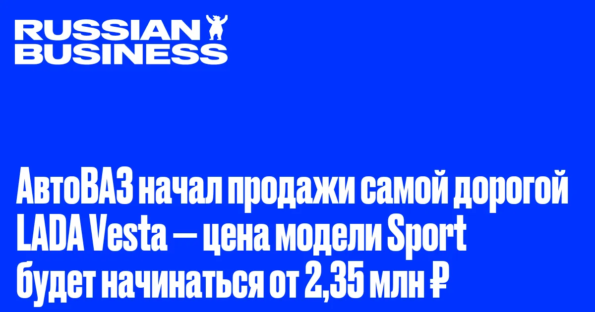 АвтоВАЗ начал продажи самой дорогой LADA Vesta — цена модели Sport будет начинаться от 2,35 млн ₽