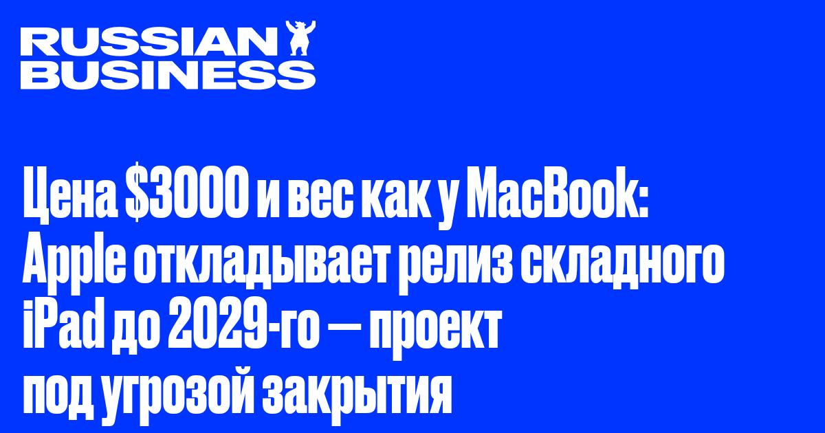 Как сообщает Bloomberg, Apple отложила запуск складного iPad как минимум до 2029 года. Компания столкнулась с инженерными сложностями при создании устройства с большим складным экраном: вес прототипа, особенности дисплея и ограничения технологий OLED вынудили перенести релиз. Разработка должна стать главным обновлением линейки iPad за последние годы.