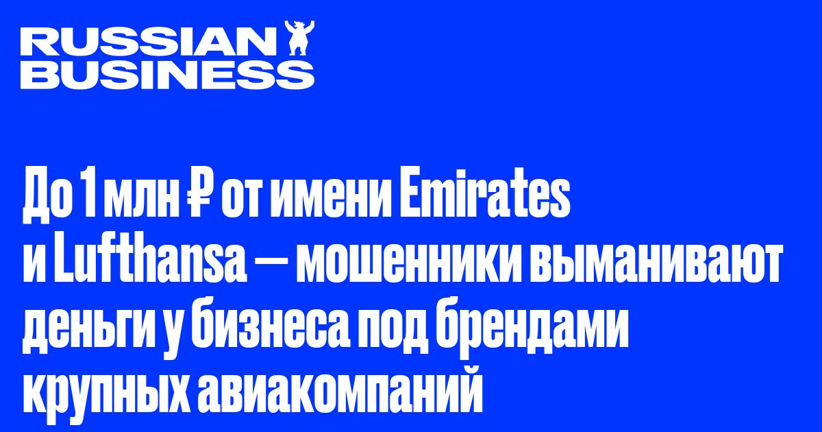 До 1 млн ₽ от имени Emirates и Lufthansa — мошенники выманивают деньги у бизнеса под брендами крупных авиакомпаний