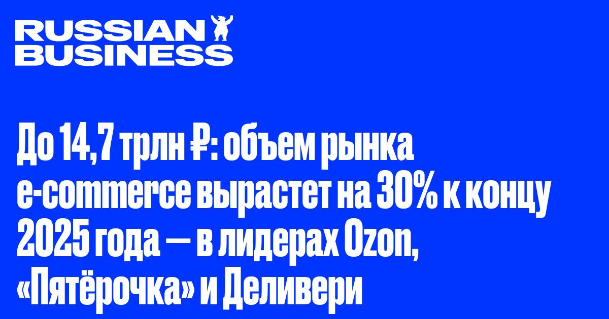 До 14,7 трлн ₽: объем рынка e-commerce вырастет на 30% к концу 2025 года — в лидерах Ozon, «Пятёрочка» и Деливери