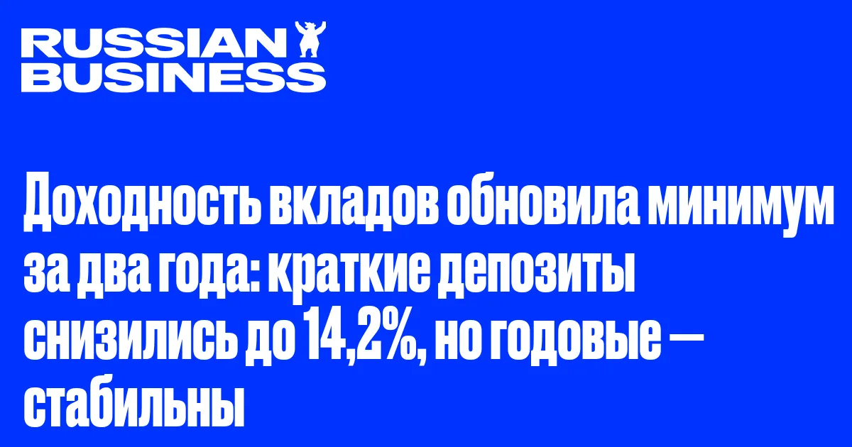 Доходность вкладов обновила минимум за два года: краткие депозиты снизились до 14,2%, но годовые — стабильны