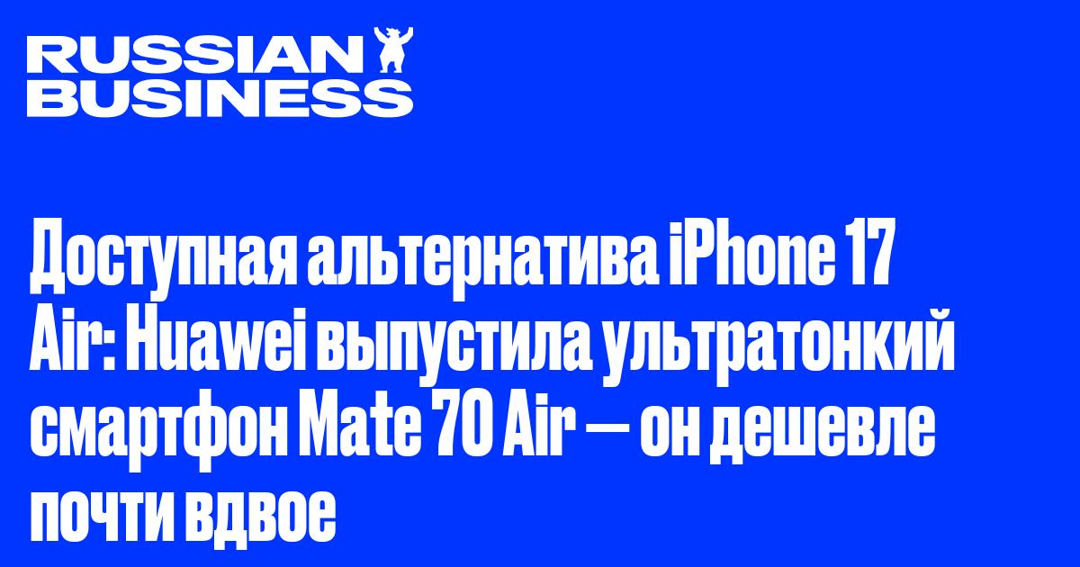 Huawei представила ультратонкий смартфон Mate 70 Air, который стал прямым ответом компании на новый iPhone Air, сообщает Bloomberg. Толщина устройства составляет 6,6 мм, а цена — $590 (около 47 тыс. ₽), что почти вдвое дешевле iPhone Air, продающегося по цене $999 (около 81 тыс. ₽). Выход модели подчёркивает стремление Huawei укрепить позиции в премиум-сегменте и напрямую конкурировать с Apple на внутреннем китайском рынке.