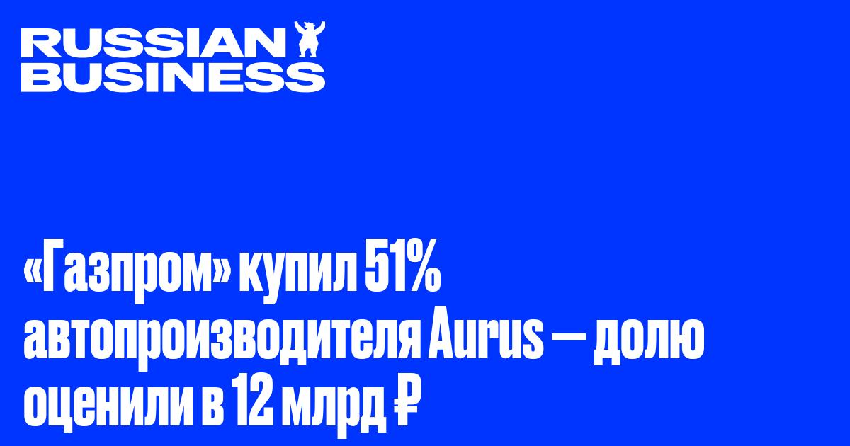 Структура «Газпрома» получила контроль над автопроизводителем Aurus, выкупив 51% компании. Об этом рассказали «Ведомостям» источники, знакомые с акционерами. Сделка прошла через «Газпром тех», созданный для консолидации промышленных активов, и оценивается в 12–13 млрд рублей.