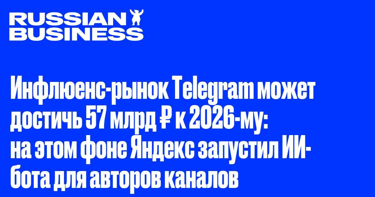 Инфлюенс-рынок Telegram может достичь 57 млрд ₽ к 2026-му: на этом фоне Яндекс запустил ИИ-бота для авторов каналов