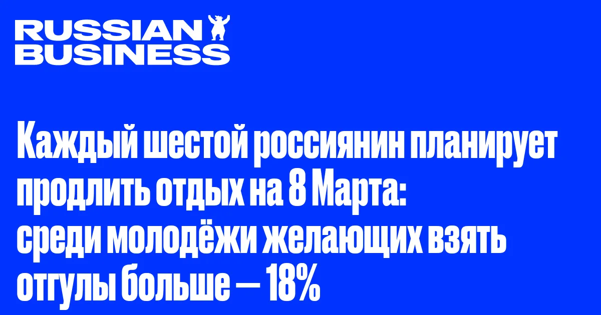 Каждый шестой россиянин планирует продлить отдых на 8 Марта: среди молодёжи желающих взять отгулы больше — 18%