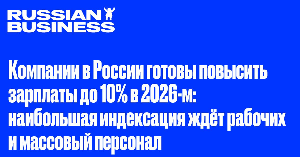 Компании в России готовы повысить зарплаты до 10% в 2026-м: наибольшая индексация ждёт рабочих и массовый персонал