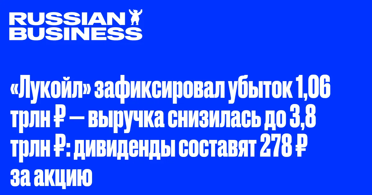 «Лукойл» зафиксировал убыток 1,06 трлн ₽ — выручка снизилась до 3,8 трлн ₽: дивиденды составят 278 ₽ за акцию