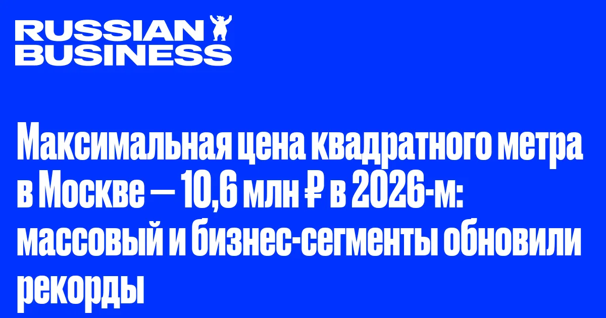 Максимальная цена квадратного метра в Москве — 10,6 млн ₽ в 2026-м: массовый и бизнес-сегменты обновили рекорды