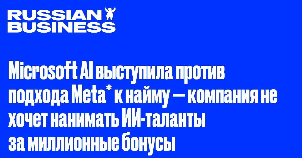 Microsoft AI выступила против подхода Meta* к найму — компания не хочет нанимать ИИ-таланты за миллионные бонусы