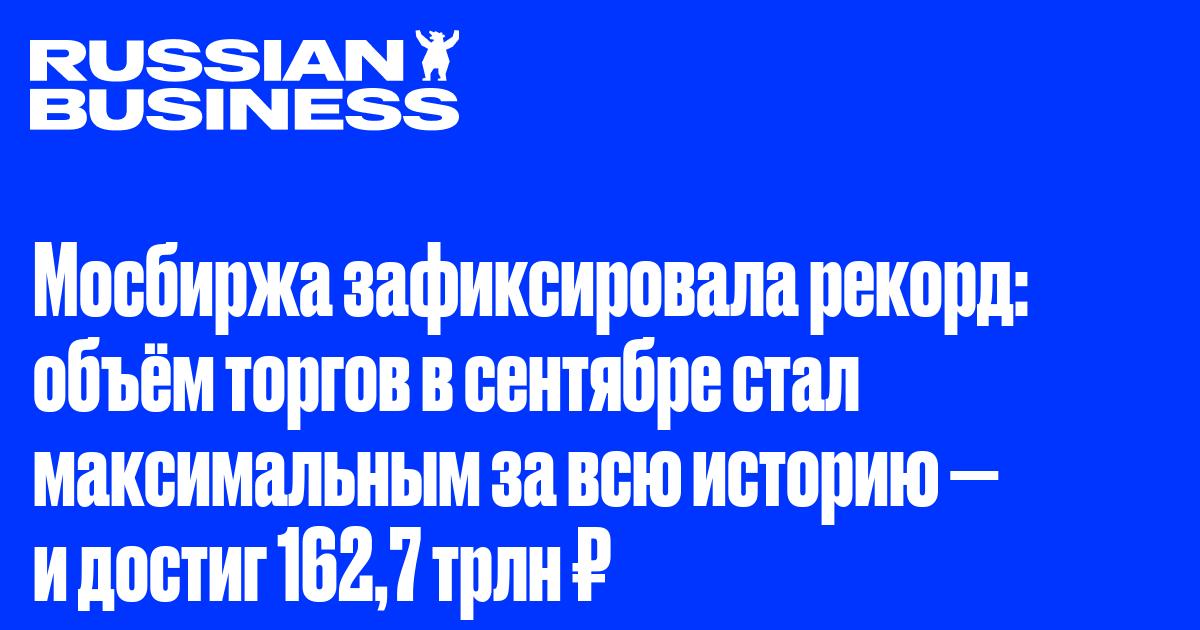 Мосбиржа зафиксировала рекорд: объём торгов в сентябре стал максимальным за всю историю — и достиг 162,7 трлн ₽
