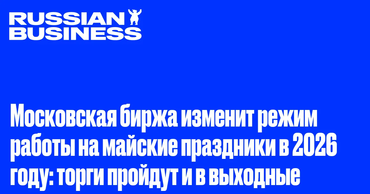 Московская биржа опубликовала расписание торгов в майские праздники 2026-го. С 1 по 3 мая на фондовом и срочном рынках запустят дополнительные сессии выходного дня. 9 и 10 мая торги на всех рынках полностью остановят. Уже 11 мая площадка вернётся к работе, однако торги пройдут с ограничениями.