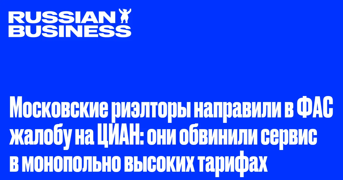 Ассоциация агентств элитной недвижимости AREA и Гильдия риэлторов Москвы подали жалобу в антимонопольную службу на сервис объявлений ЦИАН. Участники рынка заявили о систематическом росте тарифов на размещение: по их данным, с 2022 по 2024 год цены выросли на 109%. Риэлторы просят ФАС проверить тарифную политику платформы на предмет монопольно высоких цен и навязывания невыгодных условий.