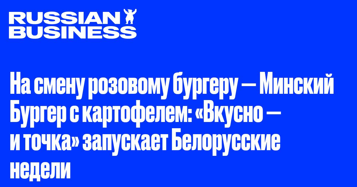 Сеть «Вкусно — и точка» сообщила, что с 24 ноября во всех ресторанах компании стартует сезонное предложение, вдохновлённое белорусской кухней. В рамках Белорусских недель в меню появятся пять новых позиций: Минский бургер, картофель фри и картофель по-деревенски со сливочно-луковым вкусом, йогуртовый соус с огурчиком и фреш маффин с оладушком.