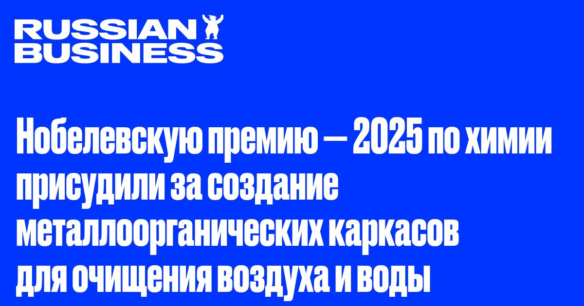 В 2025 году лауреатами Нобелевской премии по химии стали Сусуму Китагава, Ричард Робсон и Омар Ягхи. Учёные разработали металлоорганические каркасы — пористые материалы, способные улавливать, хранить и очищать различные газы и жидкости. Эти структуры легли в основу технологий по очистке воды, получению влаги из воздуха и сокращению выбросов углерода.