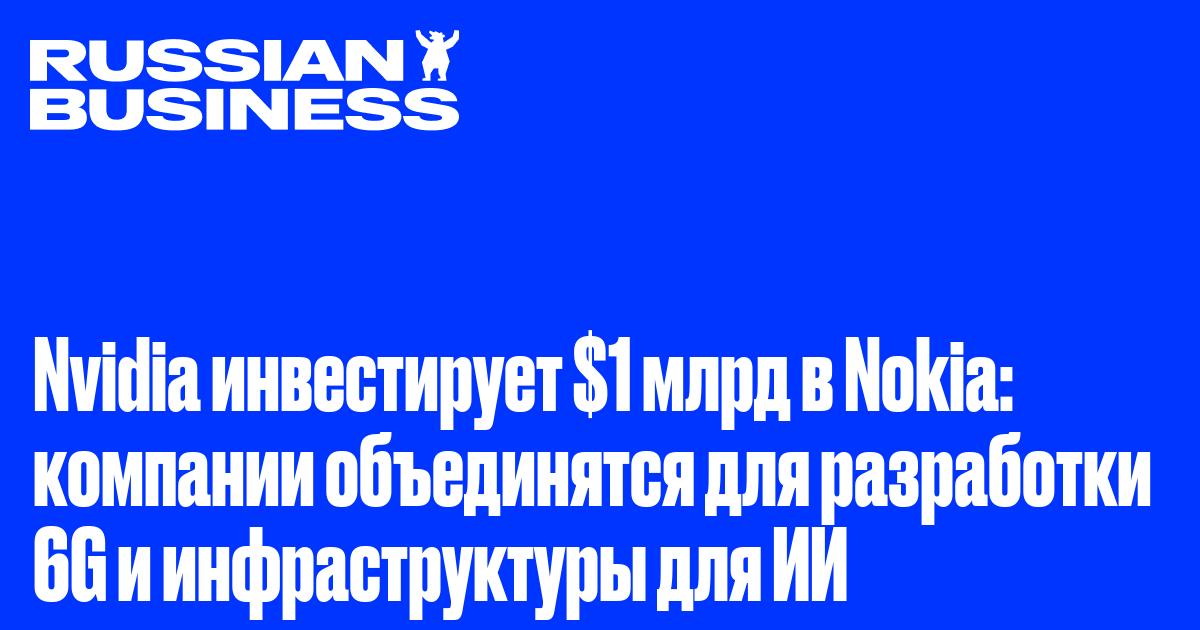 Nvidia объявила о покупке доли в Nokia на $1 млрд, став таким образом стратегическим инвестором финской компании. На фоне сделки акции Nokia выросли на 22%. Компании планируют совместно развивать 6G и сетевые решения, адаптированные под искусственный интеллект.