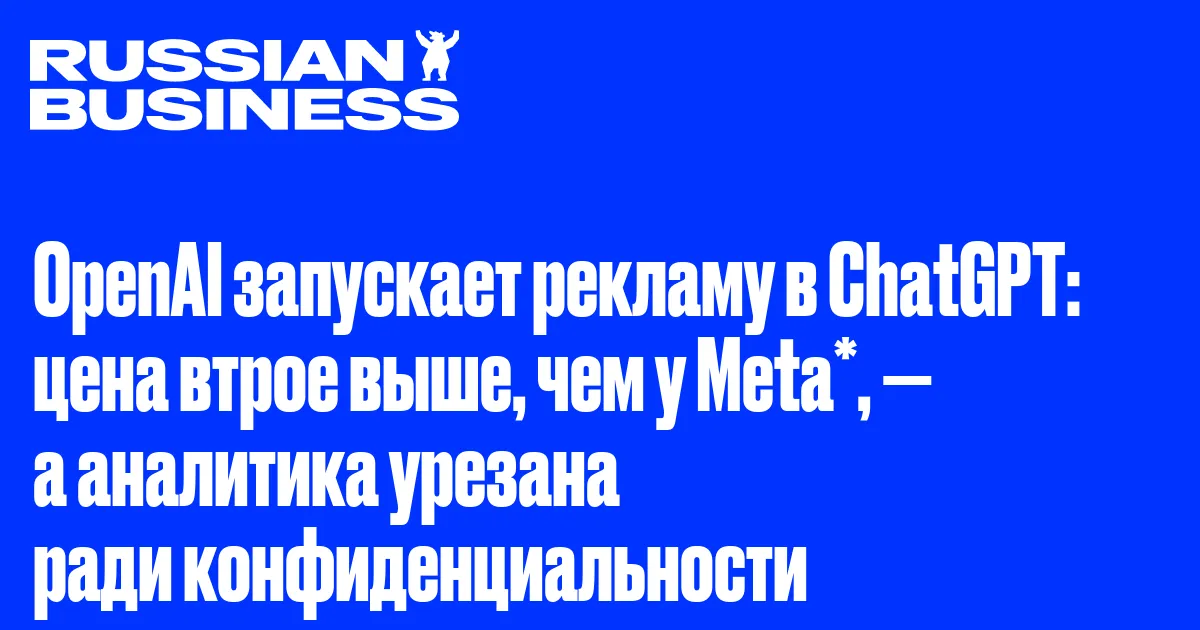 OpenAI запускает рекламу в ChatGPT: цена втрое выше, чем у Meta*, — а аналитика урезана ради конфиденциальности