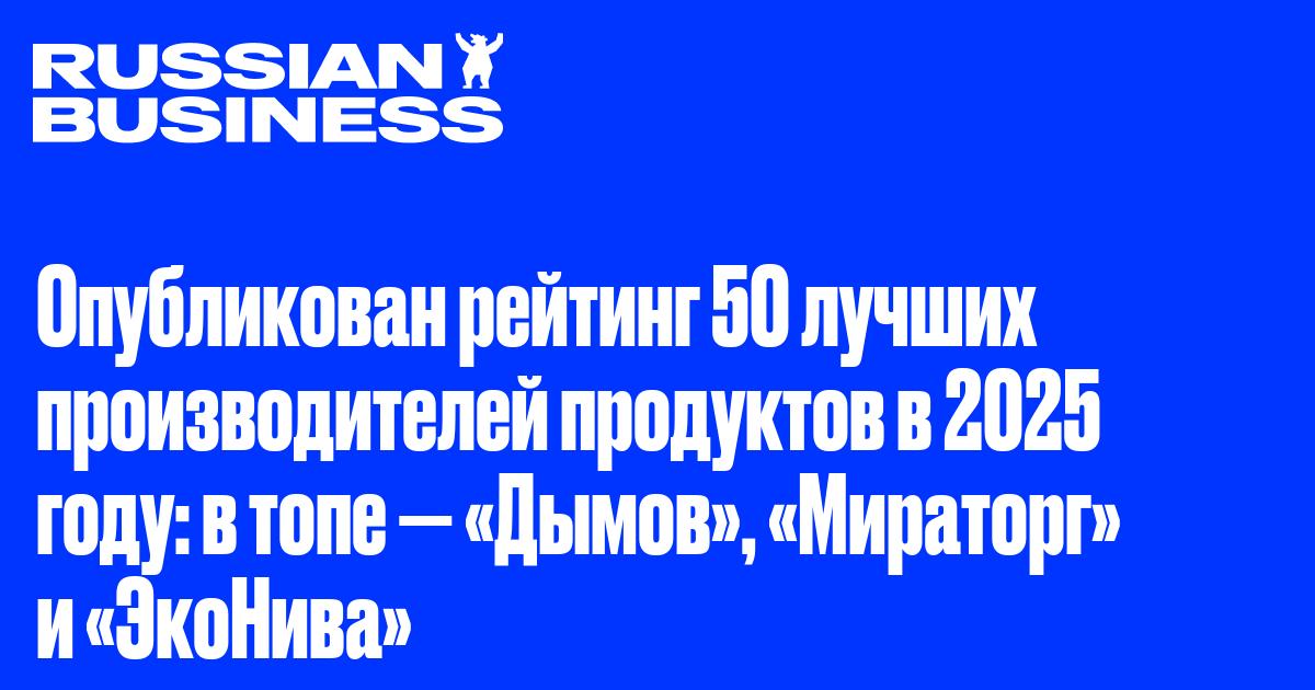 Опубликован рейтинг 50 лучших производителей продуктов в 2025 году: в топе — «Дымов», «Мираторг» и «ЭкоНива»