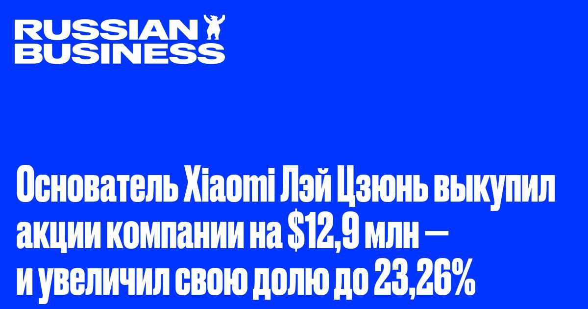 Основатель Xiaomi Лэй Цзюнь выкупил акции компании на $12,9 млн — и увеличил свою долю до 23,26%