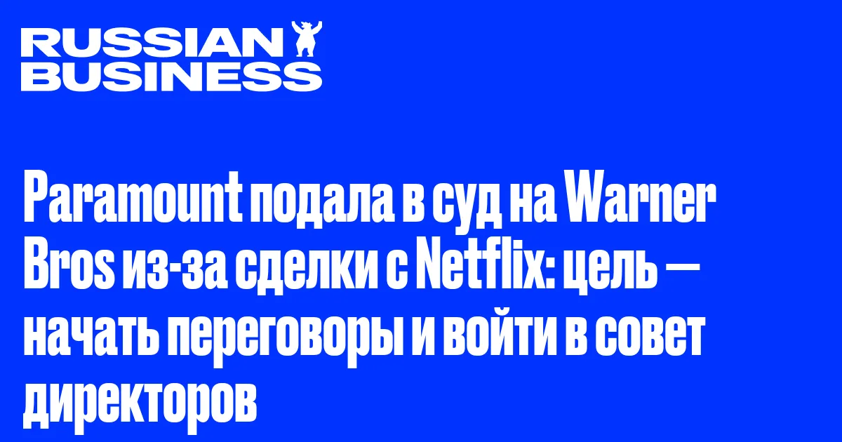 Paramount Skydance подала иск против Warner Bros. Discovery с требованием раскрыть детали сделки с Netflix на $82,7 млрд. По данным Reuters, в Paramount хотят объяснений, почему совет директоров Warner Bros согласился на менее выгодное предложение конкурирующей студии. Параллельно Paramount готовится к борьбе за голоса акционеров и намерена оспаривать контроль над WBD.