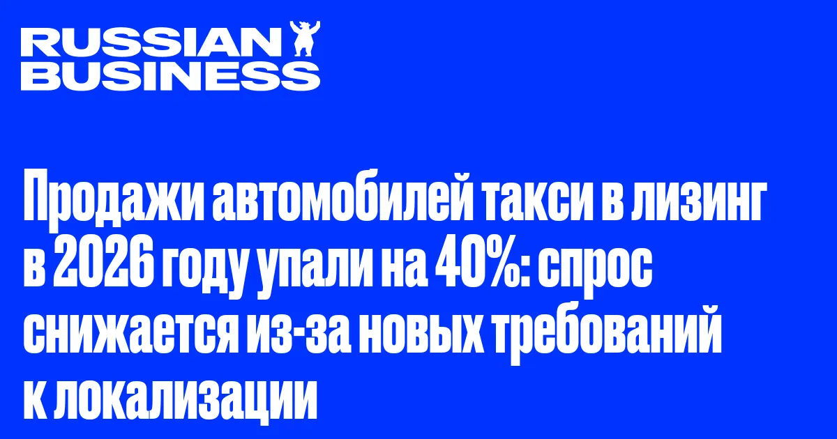 Объём продаж автомобилей такси в лизинг в январе 2026 года снизился на 40% относительно того же периода прошлого года, пишут «Ведомости». Одной из причин стал закон о локализации, вступивший в силу 1 марта. По мнению экспертов, он вызвал неопределённость вокруг перечня машин, которые смогут работать в такси.