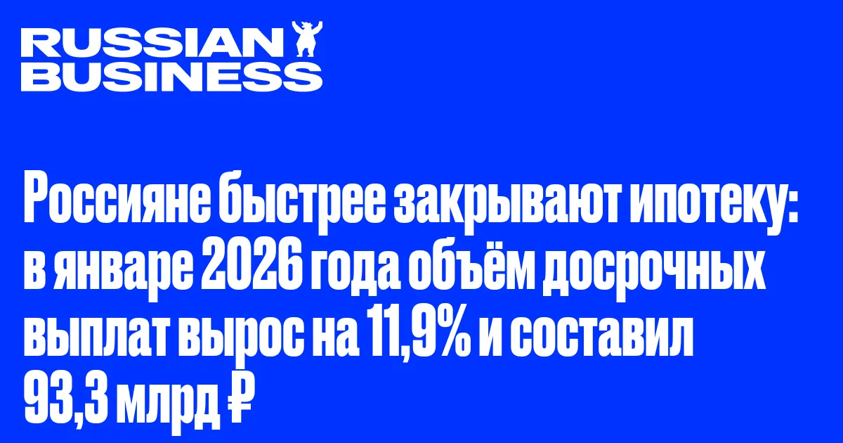 Россияне быстрее закрывают ипотеку: в январе 2026 года объём досрочных выплат вырос на 11,9% и составил 93,3 млрд ₽