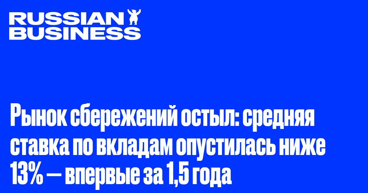 Рынок сбережений остыл: средняя ставка по вкладам опустилась ниже 13% — впервые за 1,5 года