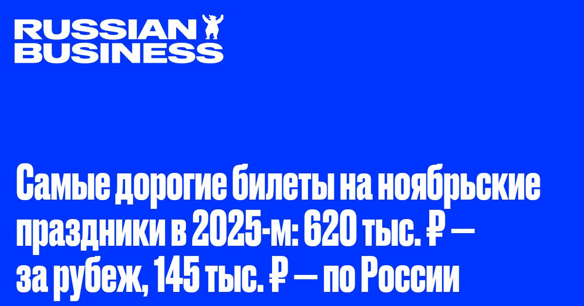 Самые дорогие билеты на ноябрьские праздники в 2025-м: 620 тыс. ₽ — за рубеж, 145 тыс. ₽ — по России