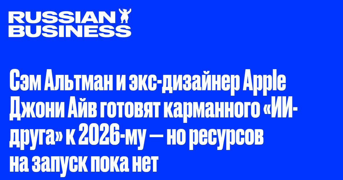 CEO OpenAI Сэм Альтман и бывший дизайнер Apple Джони Айв уже давно работают над карманным «ИИ-помощником». Команда уже создала прототип устройства, но проект тормозится из-за технических трудностей: проблем много — от нехватки вычислительных мощностей до неопределённости с характером «личности» ассистента. По данным Financial Times, ранее релиз продукта был запланирован на 2026 год — но теперь это под вопросом.