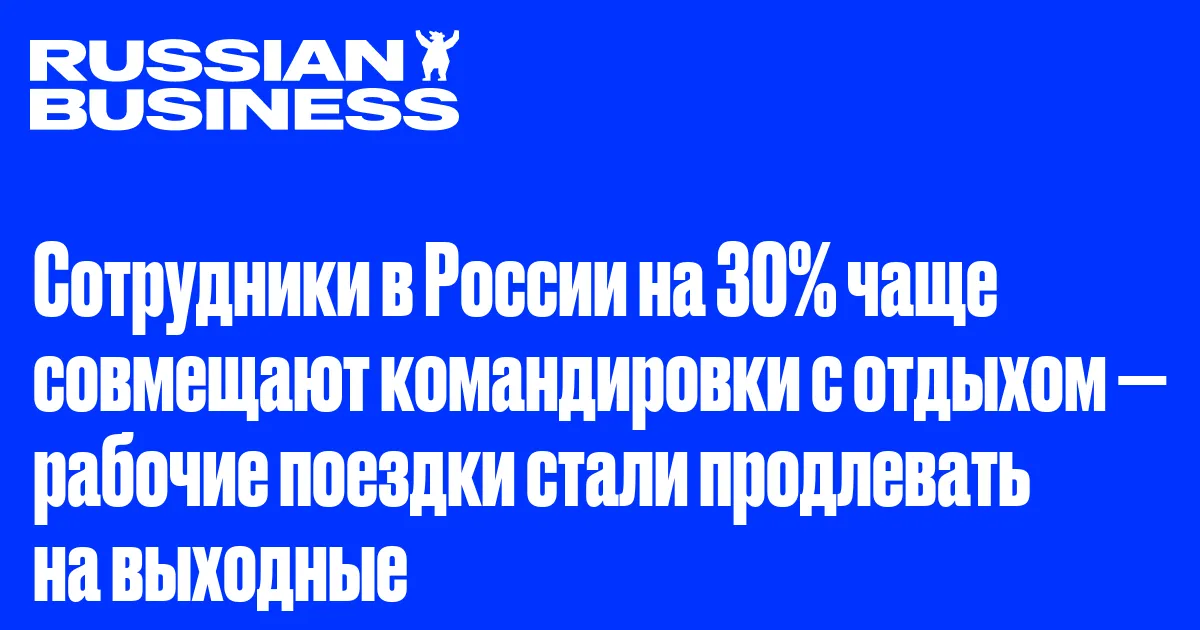 Сотрудники в России на 30% чаще совмещают командировки с отдыхом — рабочие поездки стали продлевать на выходные
