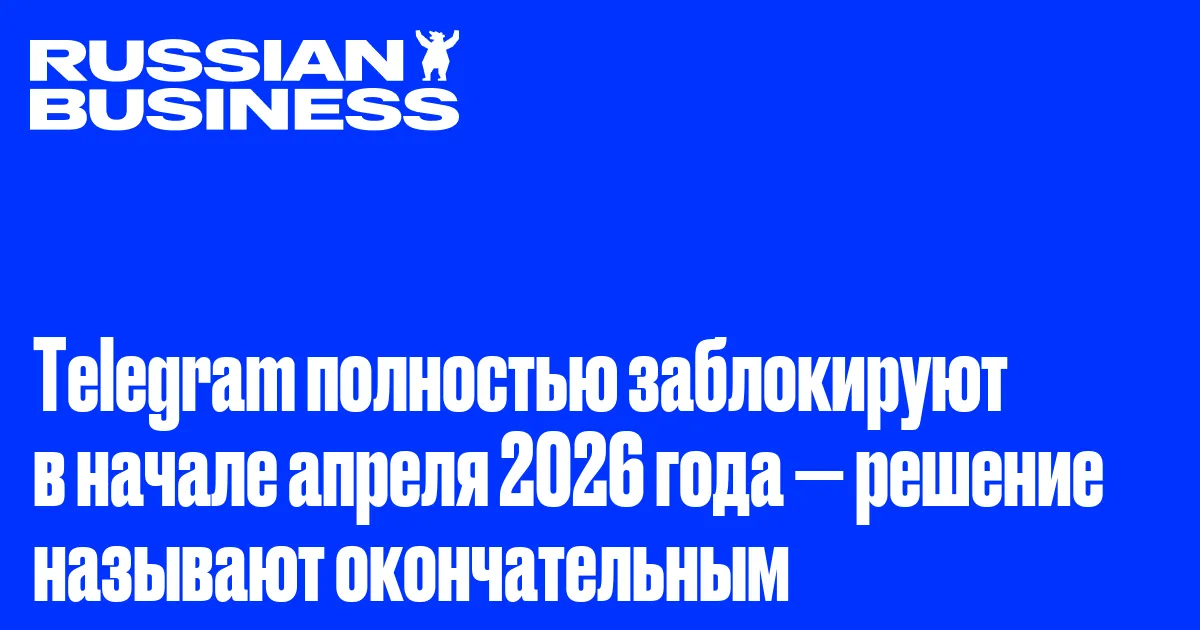 Telegram будет заблокирован в первых числах апреля 2026 года, сообщил источник РБК, знакомый с обсуждениями в профильных ведомствах. Собеседники издания назвали это решение окончательным. Меры по замедлению работы мессенджера начали применять с 10 февраля 2026 года.