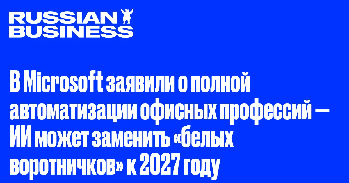 В Microsoft заявили о полной автоматизации офисных профессий — ИИ может заменить «белых воротничков» к 2027 году
