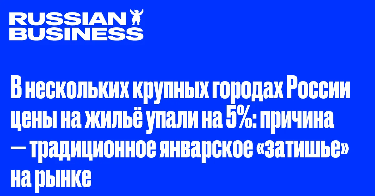 В нескольких крупных городах России цены на жильё упали на 5%: причина — традиционное январское «затишье» на рынке