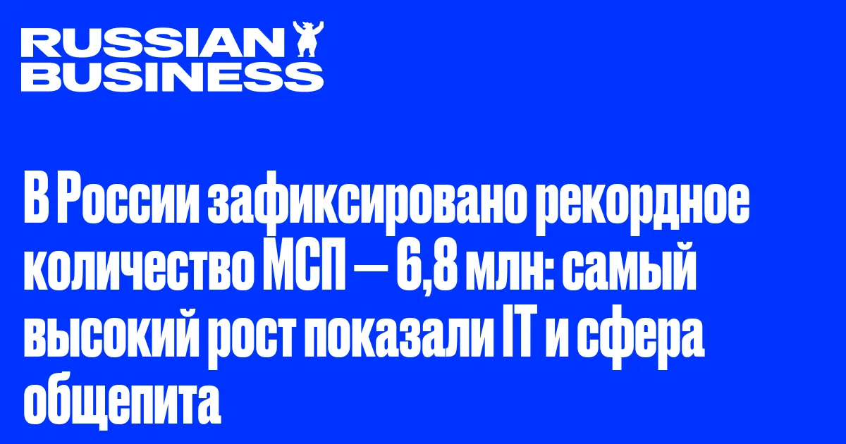 В России зафиксировано рекордное количество МСП — 6,8 млн: самый высокий рост показали IT и сфера общепита