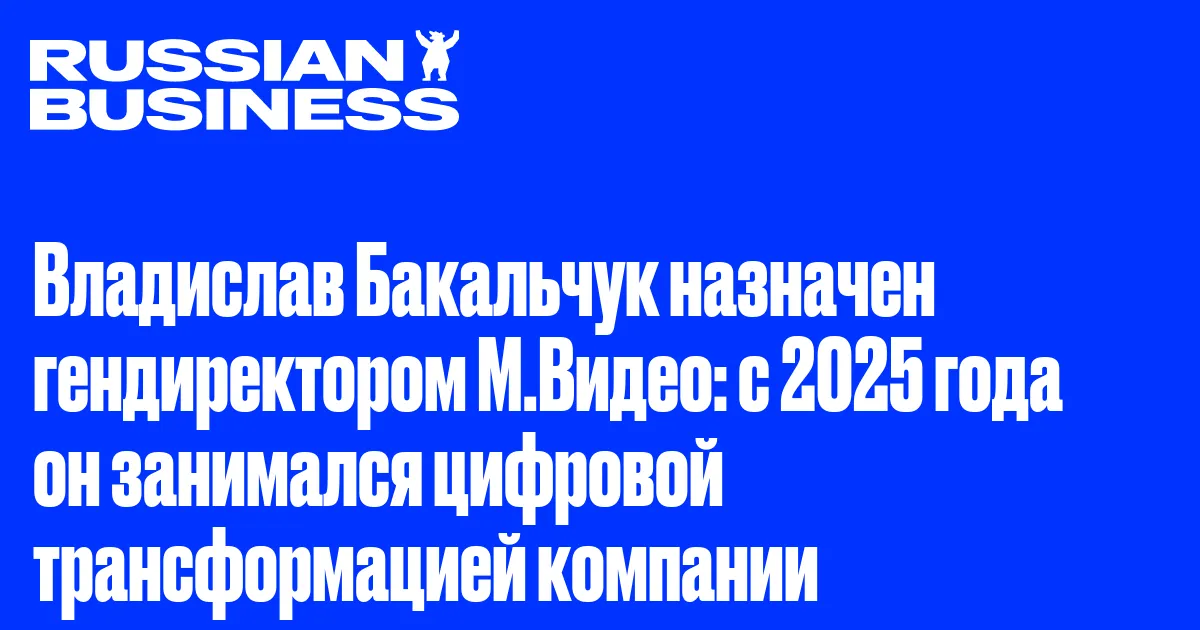 Владислав Бакальчук пришёл в команду М.Видео в августе 2025 года — тогда он занял должность главного исполнительного директора. Как сообщили в пресс-службе, с марта 2026-го он назначен на должность генерального директора компании. Теперь под его руководством — операционная деятельность и развитие бизнеса компании.