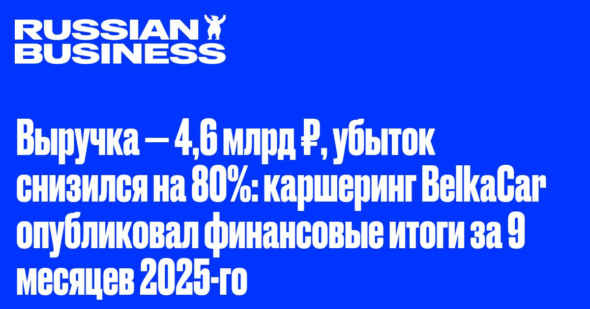Выручка — 4,6 млрд ₽, убыток снизился на 80%: каршеринг BelkaCar опубликовал финансовые итоги за 9 месяцев 2025-го