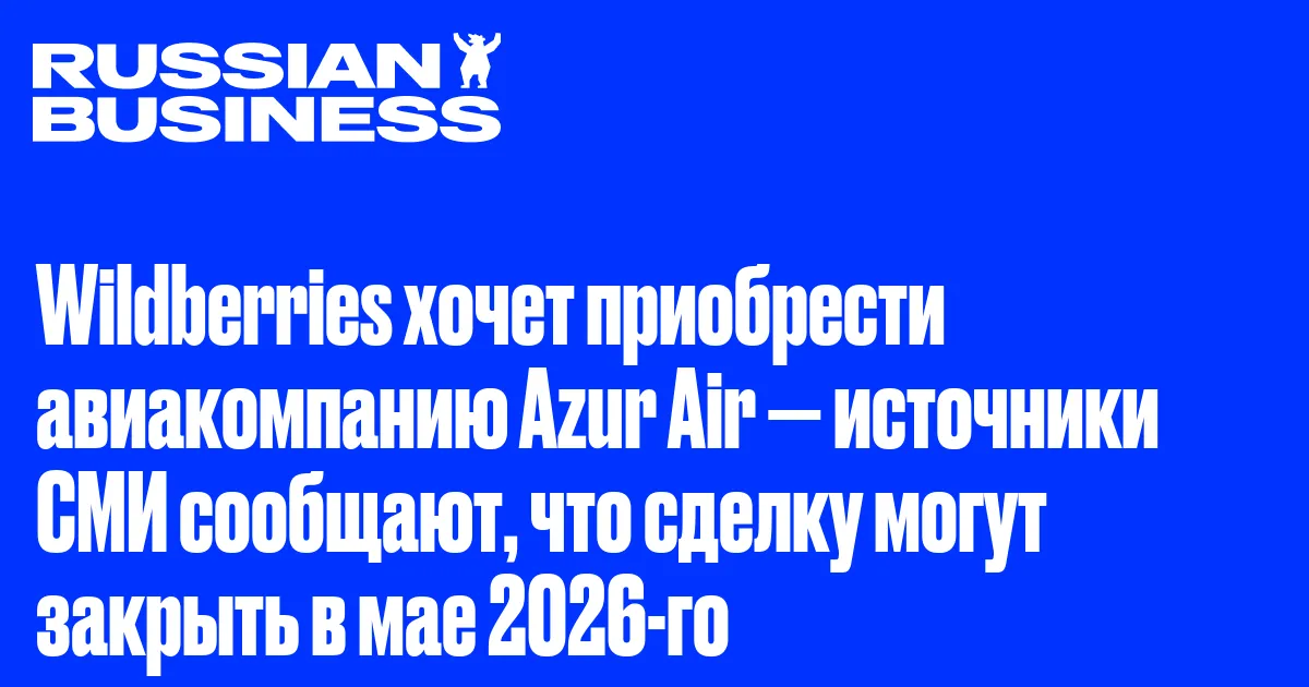 Wildberries & Russ ведёт переговоры о покупке крупнейшей чартерной авиакомпании России Azur Air. По данным Telegram-канала «Авиторщина», сделка находится «на финишной прямой», а закрыть её стороны рассчитывают к маю 2026-го. Источник канала сообщил, что актив интересен компании для развития туристического направления.