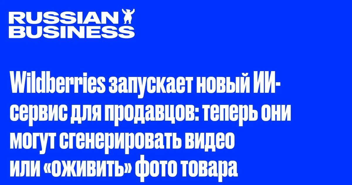 РВБ (объединённая компания Wildberries & Russ) запустила для продавцов сервис «Видеообложки», который позволяет создавать ИИ-видео и анимированные фото для карточек товаров. Как сообщили в компании, из одного изображения можно сделать видеообложку за минуту. Сервис доступен продавцам из России и Белоруссии с подпиской «Джем».