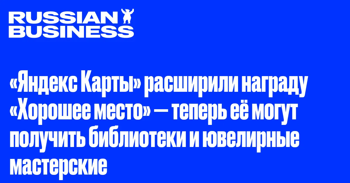 «Яндекс Карты» расширили награду «Хорошее место» — теперь её могут получить библиотеки и ювелирные мастерские