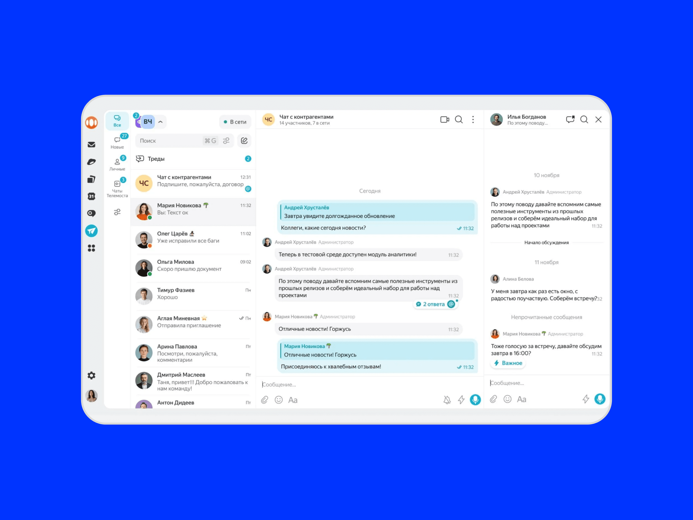 В Яндекс Мессенджере есть привычные нам инструменты для повседневного и проектного общения: